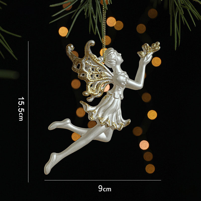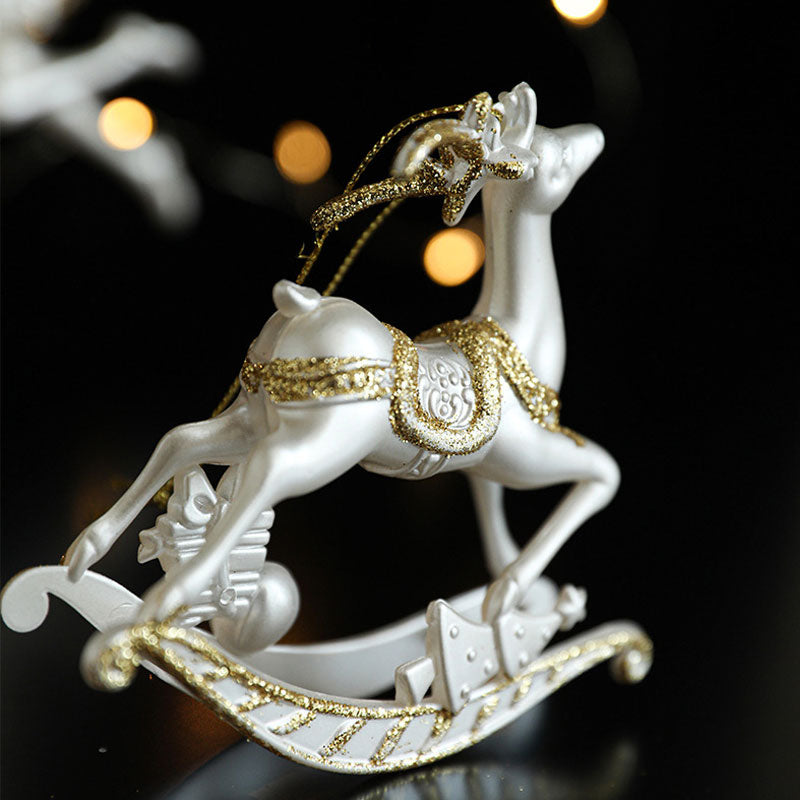 Deze magische gouden glitterornamentenset bevat schattige ontwerpen zoals sleeën, rendieren, engelen en kerstbomen.