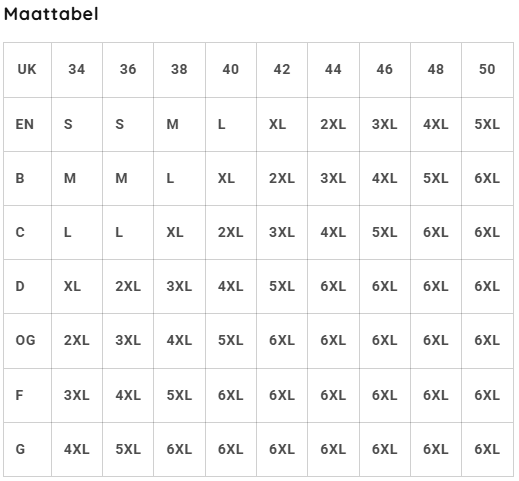 - Maten: S-6XL