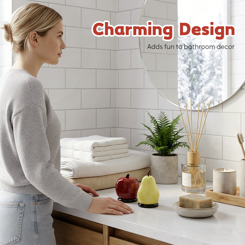 CREATIEF FRUITONTWERP - Verfraai uw badkamerinrichting met charmante appel- en peervormen. Deze unieke en speelse ontwerpen voegen een vleugje eigenzinnigheid en persoonlijkheid toe, waardoor opbergruimte voor mondhygiëneartikelen zowel functioneel als esthetisch aantrekkelijk is voor elk huis.